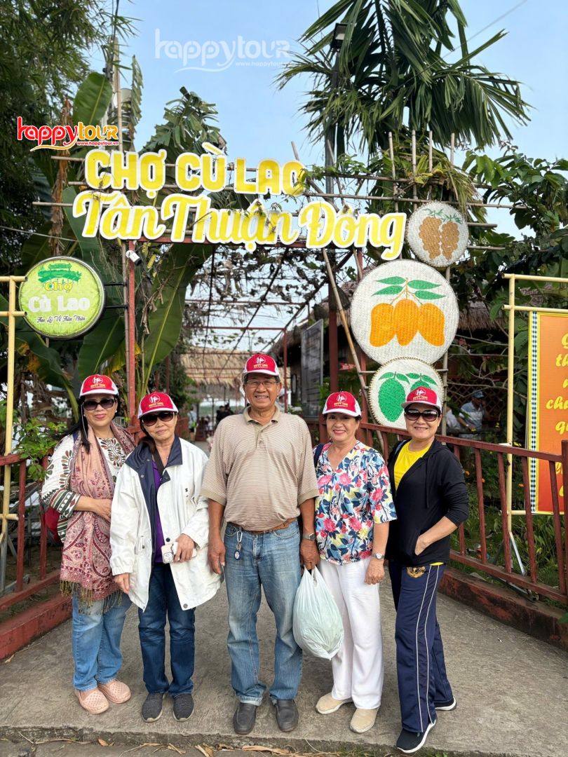 Chợ quê tại Cồn Tân Thuận Đông - Chợ bắt đầu hoạt động từ 13h00 đến 19h00 người dân buôn bán chủ yếu các vật từ địa phương như trái cây theo mùa như ổi, xoài cát, mận xanh, nhãn tiêu,…; các món ăn đặc trưng như ốc nhồi hấp sả, cá nướng, chuột nướng…; các loại bánh như khoai mì, bánh xèo, bánh ít trần, bánh bèo, bún riêu,…. rất đa da dạng phong phú. Quý khách tự do tham quan, mua sắm và thường thức những món ngon tại đây.
