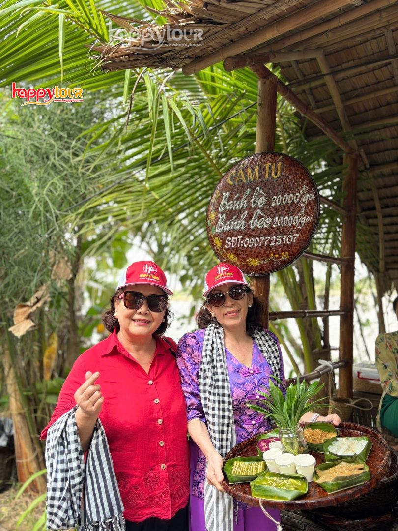 16h30: Quý khách tập trung tại Cổng chợ quê về lại đất liền, lên xe di chuyển về TP Hồ Chí Minh, trên đường về quý khách ghé mua đặc sản bánh phồng tôm, hủ tiếu, nem,…